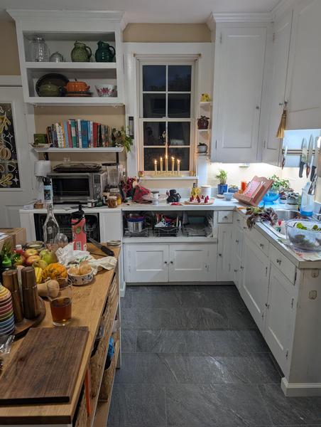 (I love a good, messy kitchen when I'm bustling around cooking. But I also love a clean one when I wake up the next morning, so it gets tidied up when I'm done. Also, putting those grow lights under my cabinets was brilliant! They're